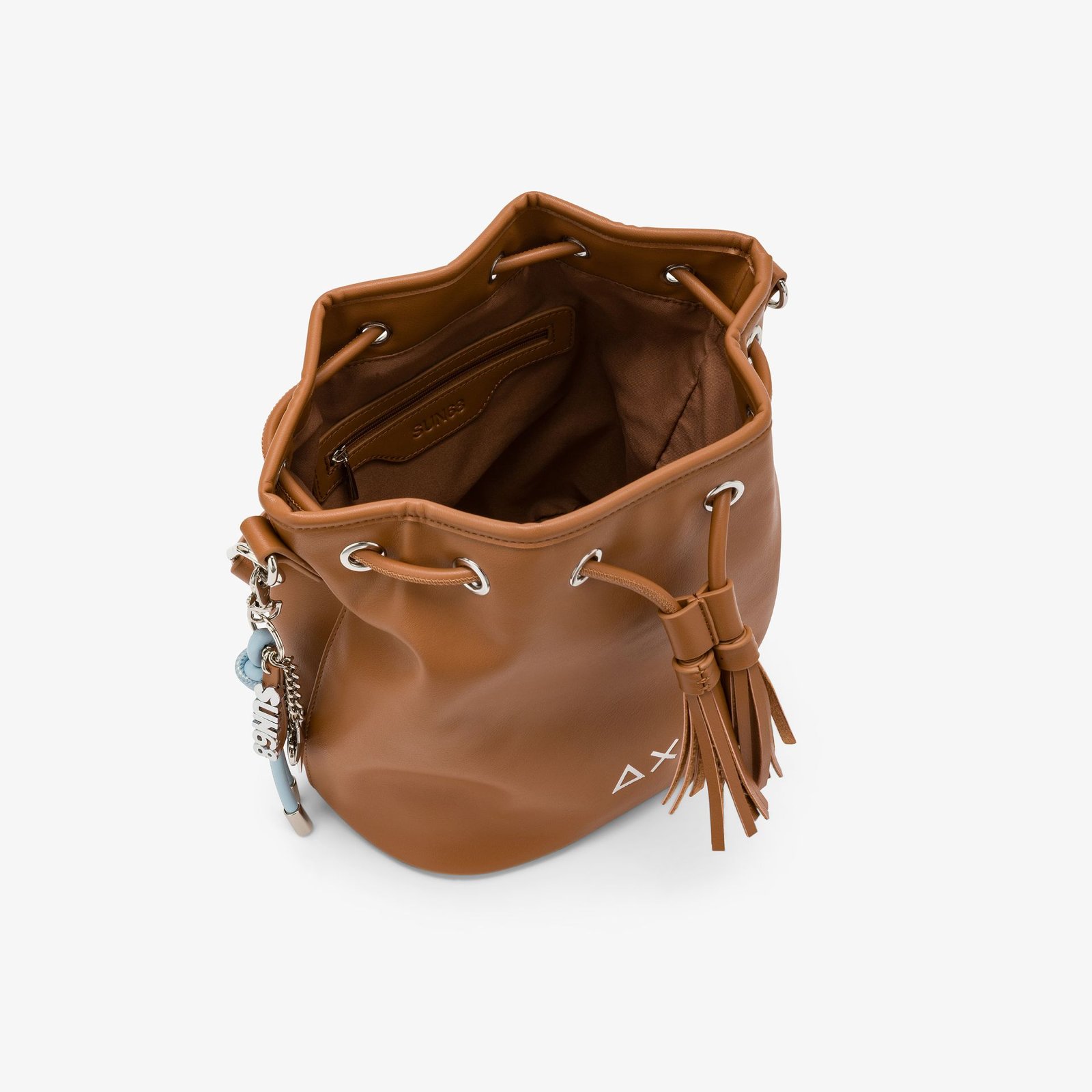 La collezione di accessori SUN68 esplora nuove forme di femminilità con modelli pratici ma sofisticati. Questa borsa a secchiello è impreziosita dal portachiavi con charms che richiama l’universo iconico del brand, mentre la tracolla rimovibile permette di indossarla a mano, a spalla o crossbody. Dalle felpe alle camicie, dagli abiti ai pantaloni cargo: è l’accento ricercato che interpreta infiniti abbinamenti.
