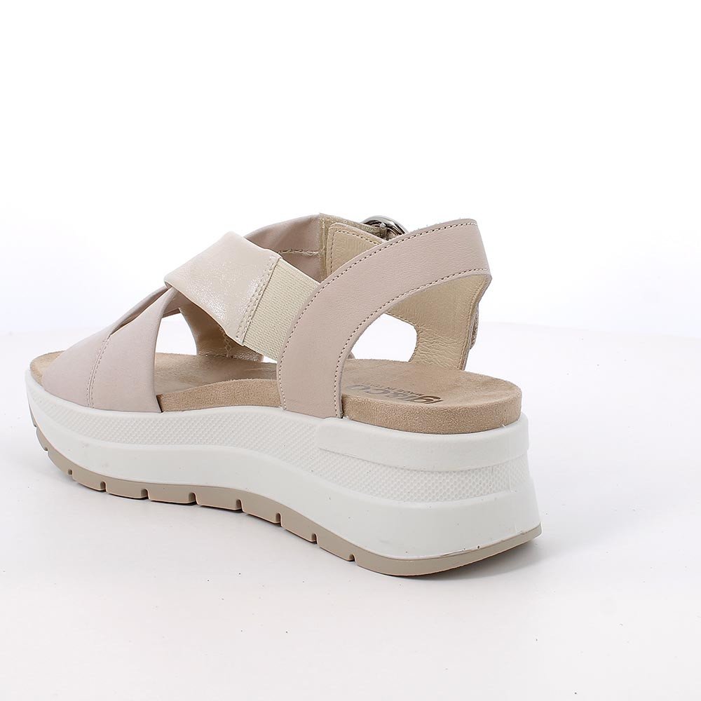 Per la donna che non vuole passare inosservata e vuole aggiungere un tocco di originalità ad ogni look, questi sandali saranno la scelta giusta. La fibbia è importante, ma leggerissima, come tutta la calzatura, che è pensata per permetterti di affrontare tutti gli impegni della giornata con stile e nella massima comodità. La suola a zeppa ha una altezza ideale per garantire comfort ad ogni tuo passo ed un battistrada seghettato che assicura una migliore presa sul terreno.