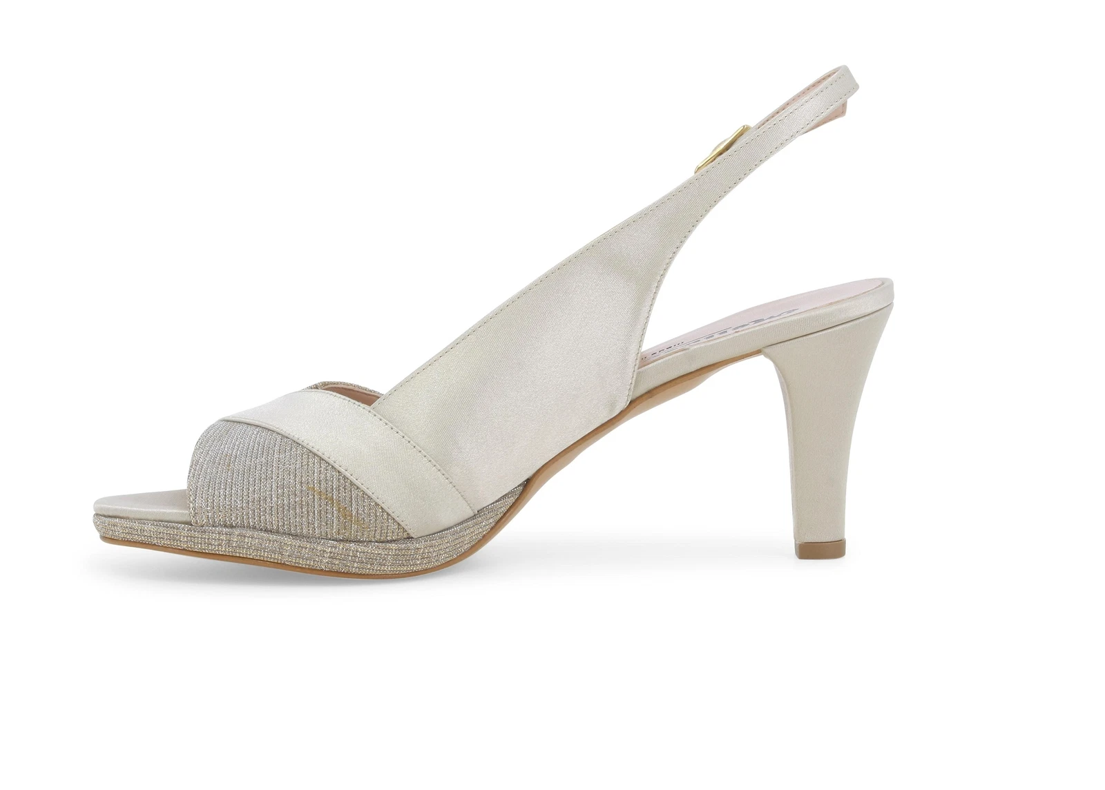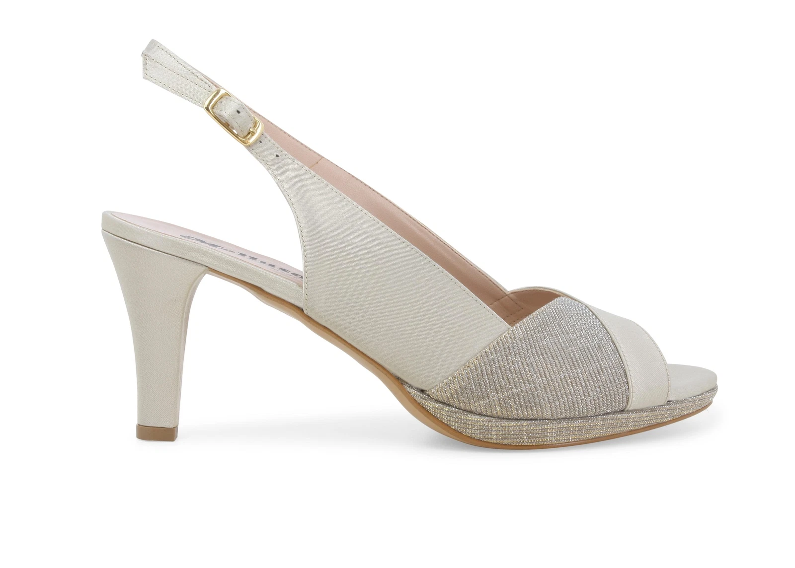 Questa scarpa elegante in raso platino è il perfetto equilibrio tra stile sofisticato e dettagli raffinati. Gli inserti glitter tono su tono aggiungono un tocco scintillante che non passa inosservato, rendendola una scelta ideale per serate speciali, matrimoni o eventi formali.