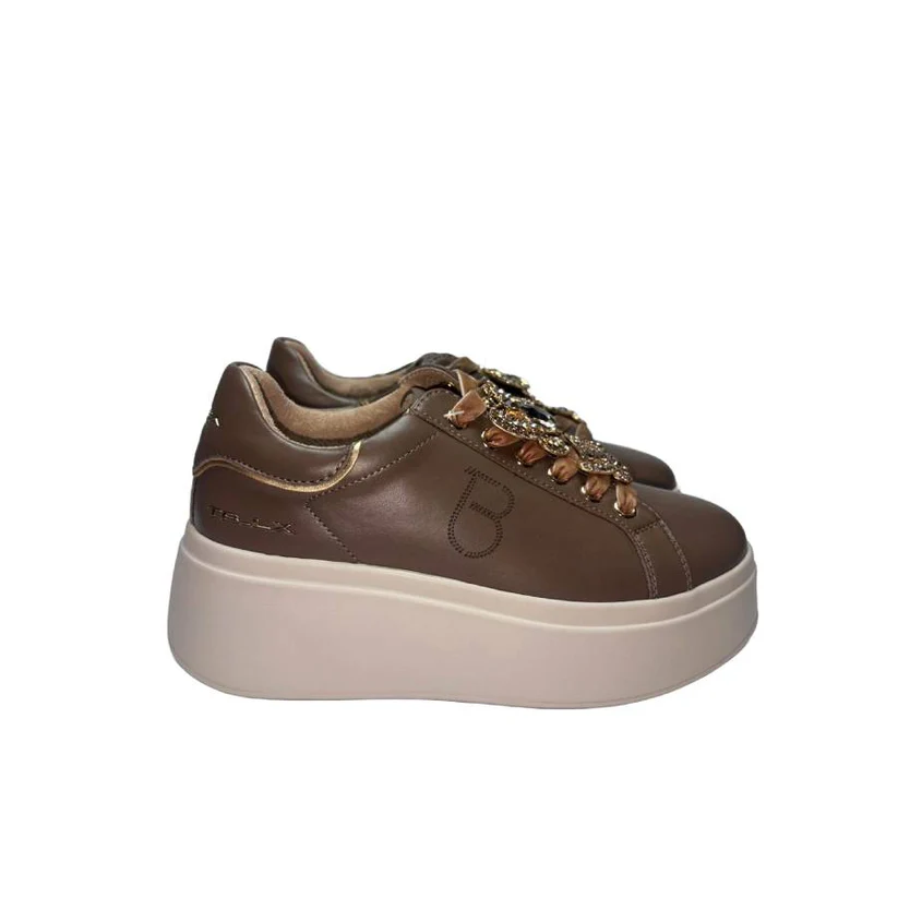 Le sneaker Tosca Blu SF2502 S098 combinano eleganza e femminilità in un design moderno e ricercato. Realizzate in pelle color fango, sono impreziosite da lacci in velluto adornati da un delicato gioiello a forma di farfalla, dettaglio che rende il modello unico e sofisticato.